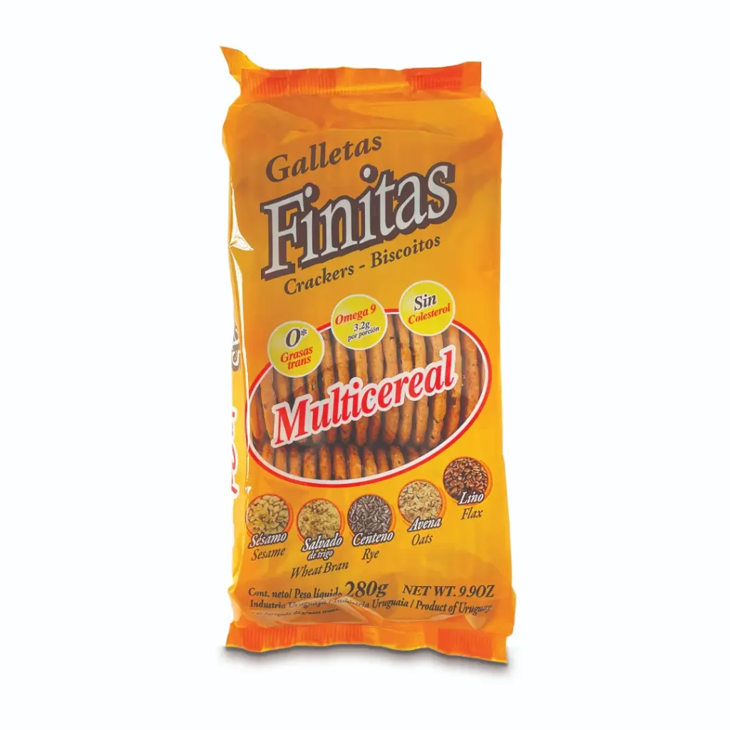 Harina de trigo enriquecida (*), aceite de girasol alto oleico, semillas de sésamo, semillas de lino, salvado de trigo, avena laminada, harina de centeno, sal, harina de malta, levadura, emulsionantes (INS 322, INS 472e, INS 482), mejoradores de harina (INS 300, INS 927). (*)Para Uruguay: harina de trigo enriquecida según Decreto 130/006: hierro 30 mg/kg, ácido fólico 2,4 mg/kg. Contiene derivados de trigo, SÉSAMO, AVENA, CENTENO, CEBADA Y SOJA. PUEDE CONTENER DERIVADOS DE COCO. Conservar en lugar fresco y seco.